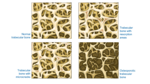 Questo tipo di struttura trabecolare, può presentare trabecole più o meno spesse e robuste a seconda della dieta, del carico e della richiesta di calcio e fosforo da parte dei tessuti periferici del corpo umano. Quando le trabecole si assottigliano troppo parliamo di osteoporosi, una situazione che si accompagna ad un aumento di fratture per traumi anche di piccola entità.
