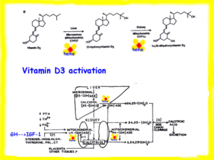 Tutti sanno che la Vitamina D si forma nella pelle, ma quasi nessuno sa che per funzionare la vitD deve venire idrossilata (aggiungere un OH) prima in 25 (nel fegato), poi in 1 nei tessuti periferici, rene, osso, pelle).