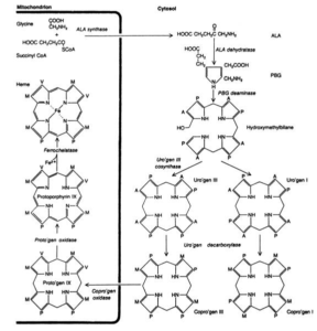 Per la sua sintesi richiede, ferro, estrogeni, glicina e anione superossido che è proporzionale a quanto è attiva la respirazione mitocondriale, che dipende dall’attività fisica e dalla disponibilità di Coenzima Q10, Ac. Lipoico e cytC.