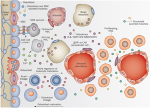 Nel midollo osseo le varie linee cellulari convivono regolando la proliferazione dell’uno o dell’altro stipite sulla base di una serie di molecole come le eritropoietina per i globuli rossi e di altre molecole segnale che bloccano la proliferazione delle linee concorrenti nello spazio chiuso del midollo.
